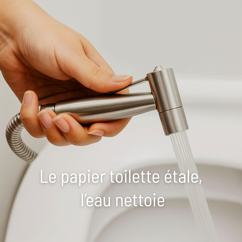 L’eau est à température ambiante, ni froide, ni chaude : simplement fraîche. C’est une température naturelle, sûre pour la zone intime, on s’y habitue en quelques jours. Cette légère fraîcheur renforce même la sensation de propreté.